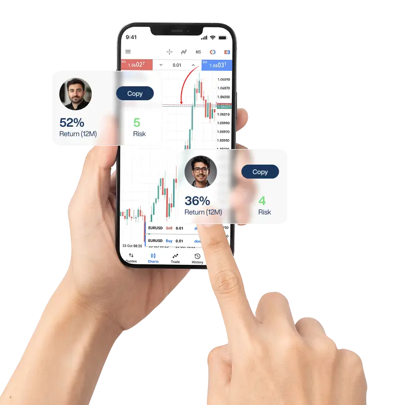 Social Trading is a feature that allows traders to connect with and copy the strategies of experienced traders in real time. It lets you follow top-performing traders, automatically replicate their trades, and learn from their market insights. Whether you’re a beginner or a seasoned trader, Social Trading helps you tap into a global community of top traders to diversify your strategies.