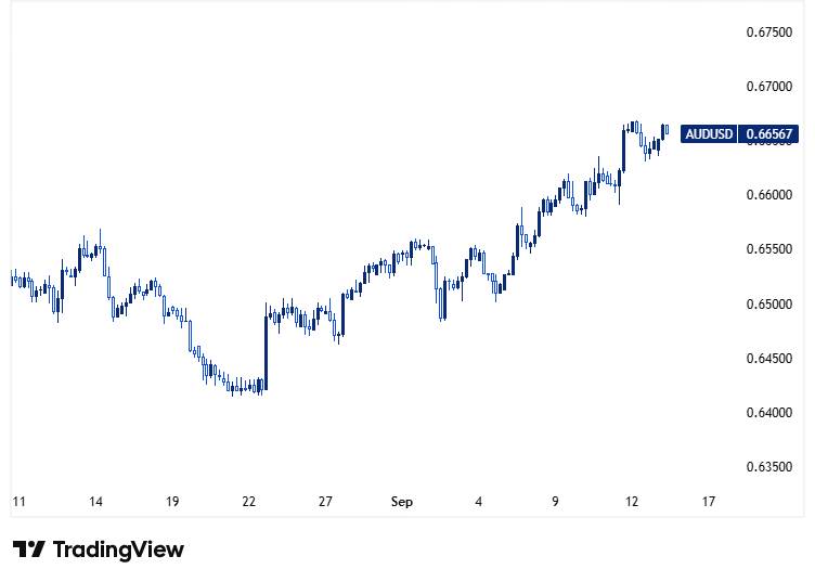 AUD/USD rose to 10-month highs, supported by upbeat Australian data and weak US jobless claims, which have raised hopes for Federal Reserve rate cuts. Strong Australian domestic data, including rising consumer inflation expectations and firmer household demand, have reduced expectations of further RBA rate cuts, supporting the AUD.
