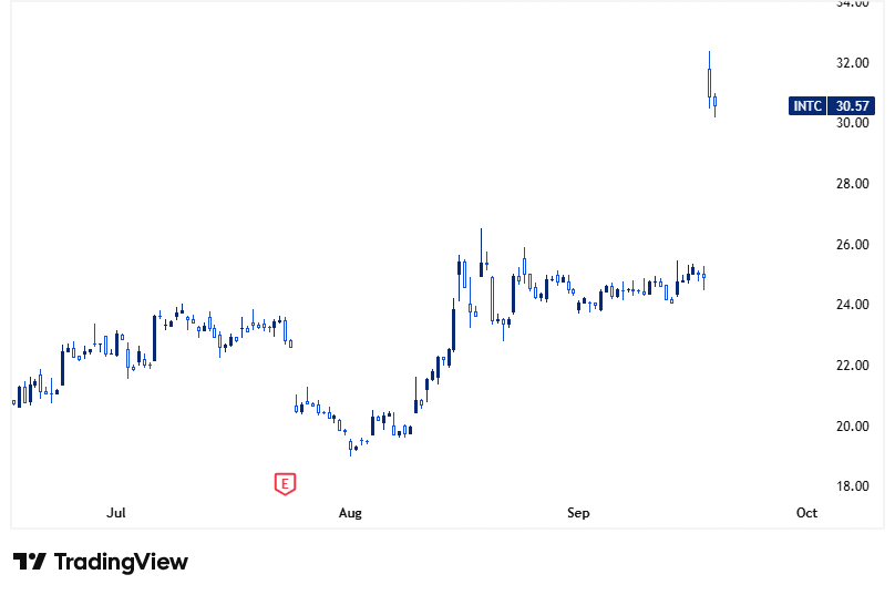 Intel shares, which hit its lowest level in more than a decade earlier this year, rebounded after finding renewed support from the Trump administration, striking a deal for the US government to invest a 10% stake in the chipmaker in August. ⁽⁹⁾